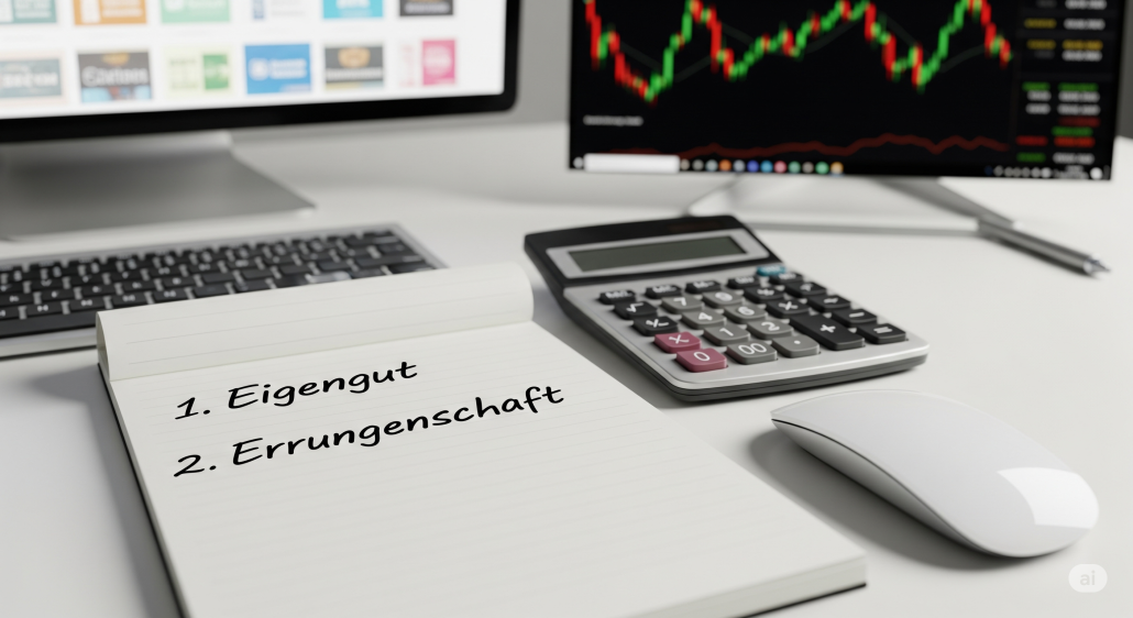 Wichtig: Wertsteigerungen, die auf rein konjunkturellen Schwankungen (Kursgewinne) beruhen, bleiben hingegen grundsätzlich Eigengut. Nur wenn die Wertsteigerung auf Investitionen aus Errungenschaftsmitteln beruht, ist der entsprechende Mehrwert ebenfalls Errungenschaft.