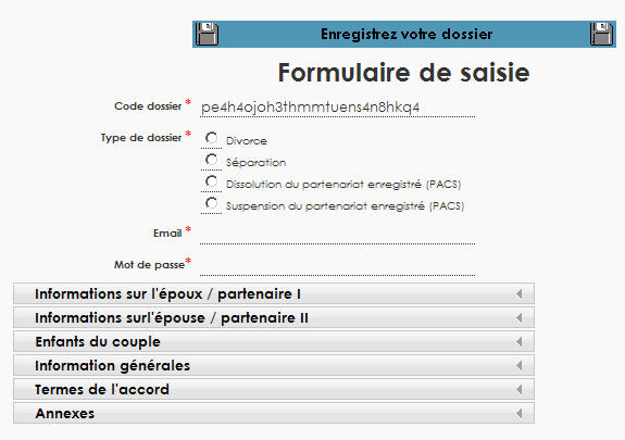 L’utilisateur peut rechercher un dossier déjà saisi en introduisant son email ainsi que son mot de passe.