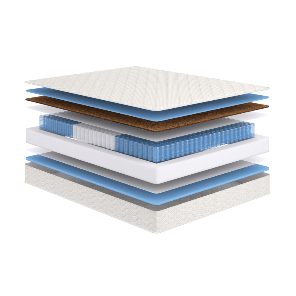 На основе блока независимых пружин Pocket, плотностью 500 пружин на спальное место,Блок независимых пружин, разделенный на 3 зоны жесткости, учитывая физиологию человеческого тела значительно улучшает поддержку позвоночника. Foam,Pocket 3 зоны,Кокос,Foam,Высота 180мм,чехол трикотаж