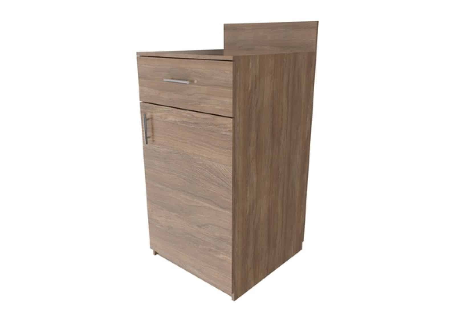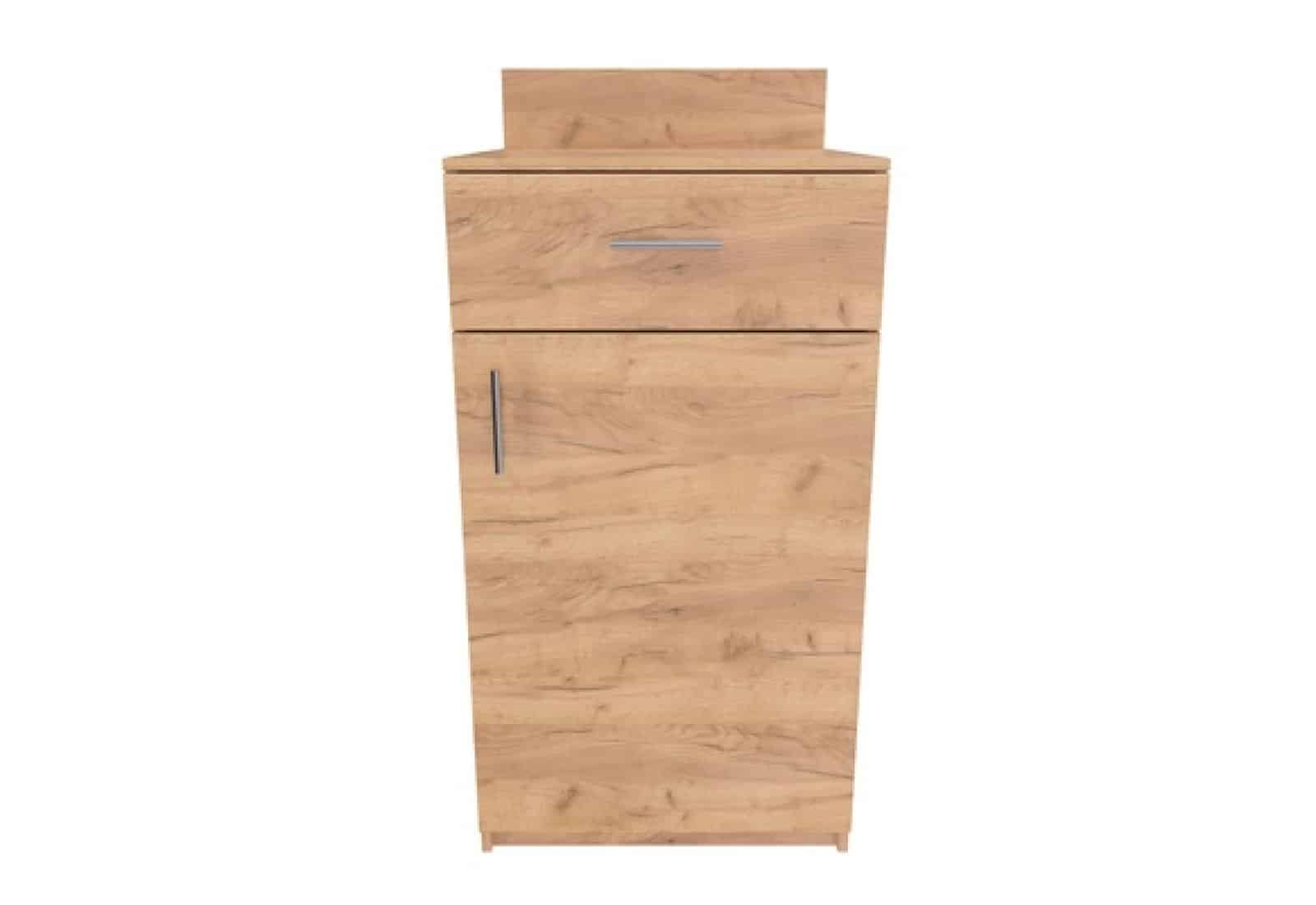 Тумба под минибар 600*1100*600, цоколь+дверца+выдвиж. Ящ+царга, ЛДСП стандарт, 16 мм, кромка 2+0.4, скрытая фурнитура, доводчики